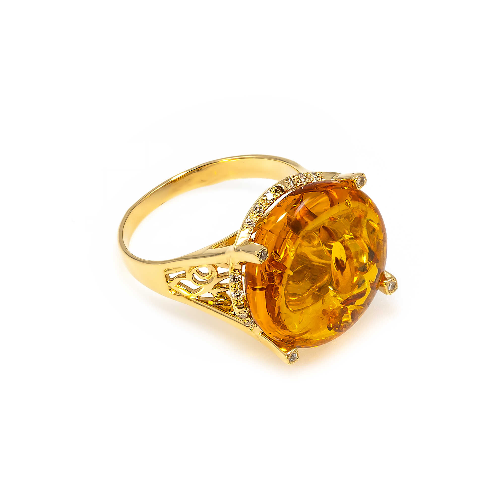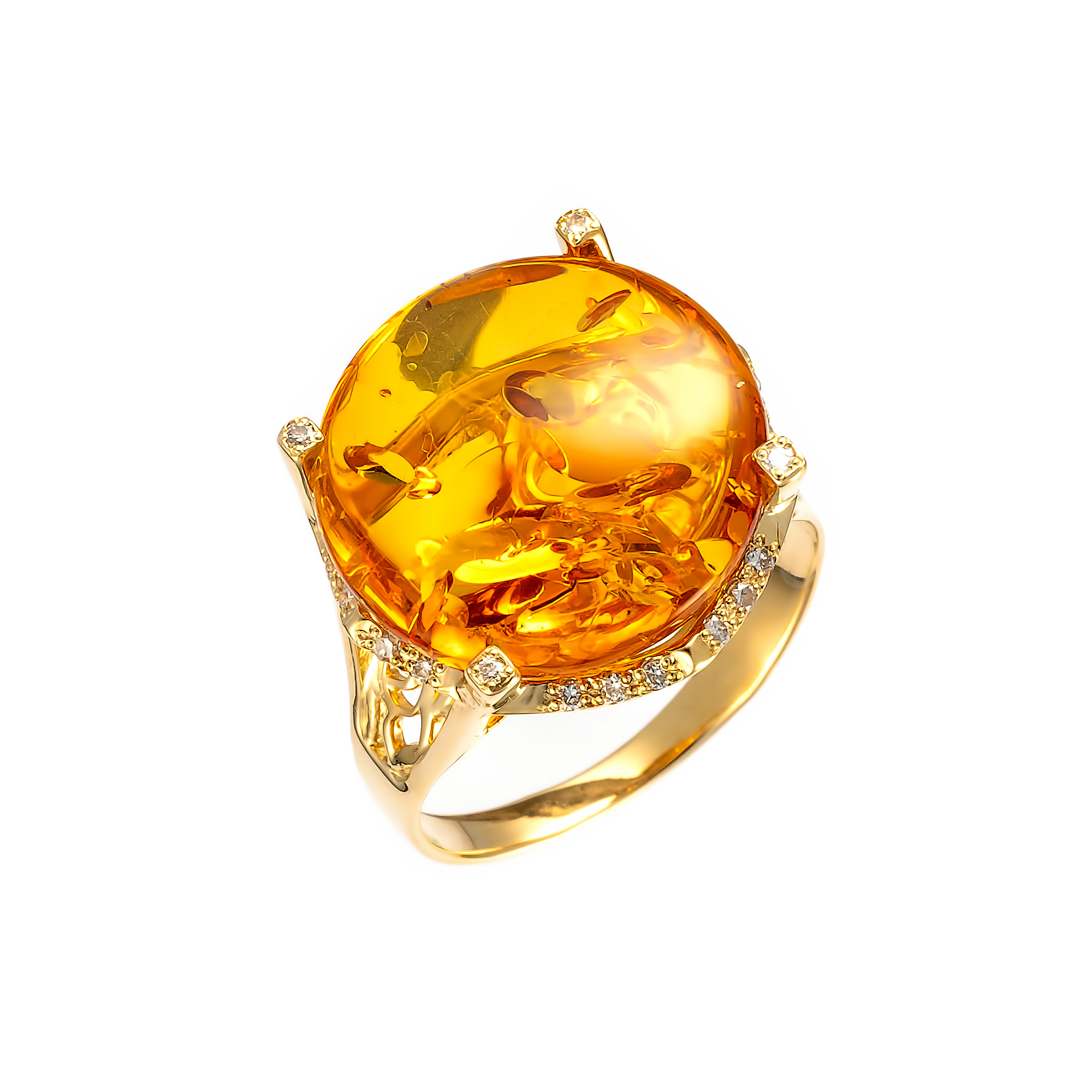 Золото 585º. Вставка янтарь, фианит.